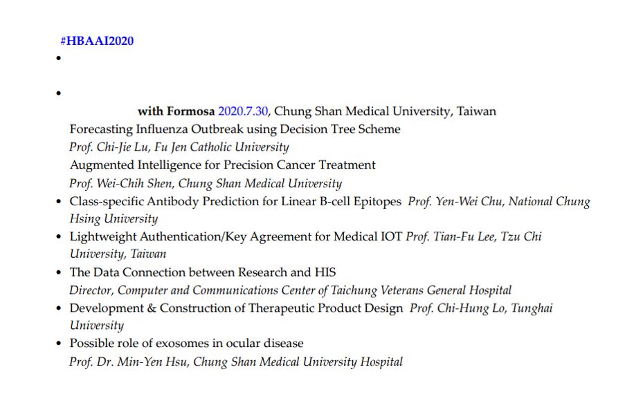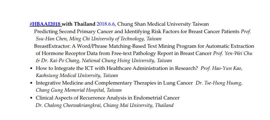 Health Bigdata Analytics Artificial Intelligence Forum (HBAAI) in 2018 HBAAI