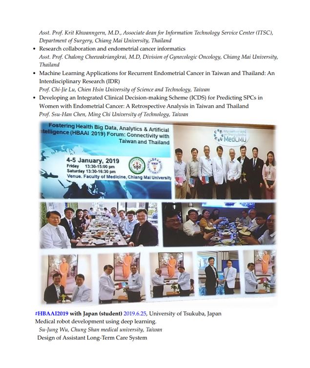 • Chi-Chang Chang, Chi-Jie Lu, Chalong Cheewakriangkrai, Su-Hsin Chang (2018, June) Preface for the Special Issue on Computational Intelligence Technologies Meet Medical Informatics -From Prediction to Prognosis, Journal of Universal Computer Science, 24(6), 662-664. (SCI)