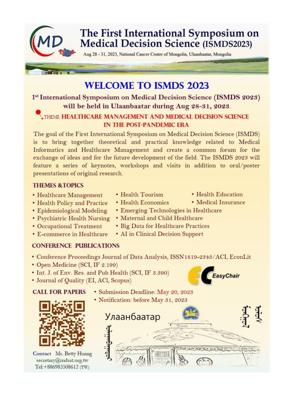 2023.8.28-31, Ulaanbaatar, Mongolia Theme: Healthcare Management and Medical Decision Science in the PostPandemic Era